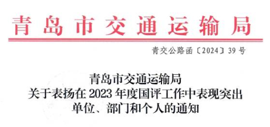 高速公路网国评成绩优异,青岛运管中心获市交通运输局通报表扬